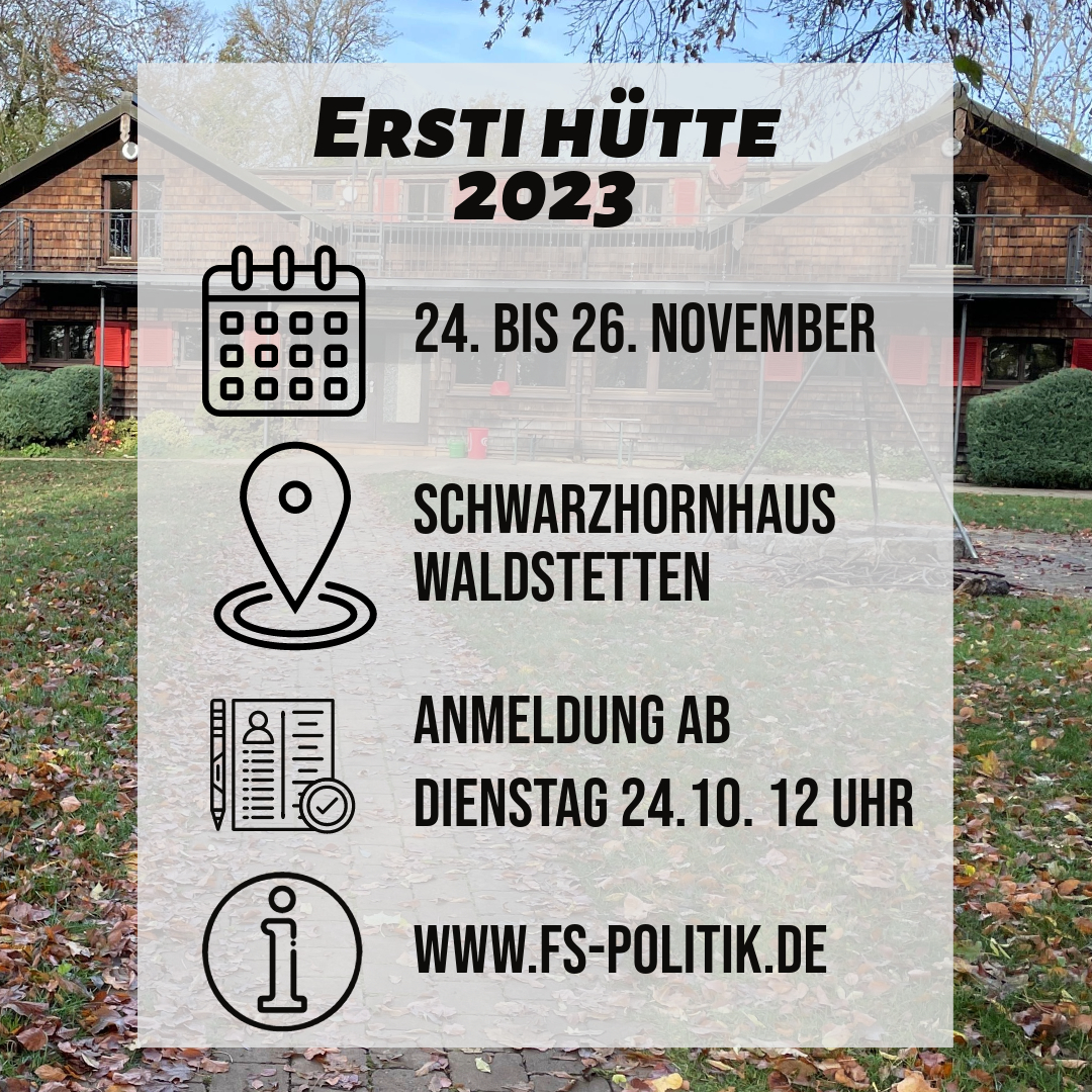 Liebe Erstis, Wir hoffen, euch hat die Ersti-Woche gefallen und ihr seid gut in eure erste richtige Uniwoche gestartet. Wie bereits angekündigt, findet vom 8.-10. November die PoWi Erstihütte statt. Was ist eine Erstihütte? Quasi Weiterlesen…