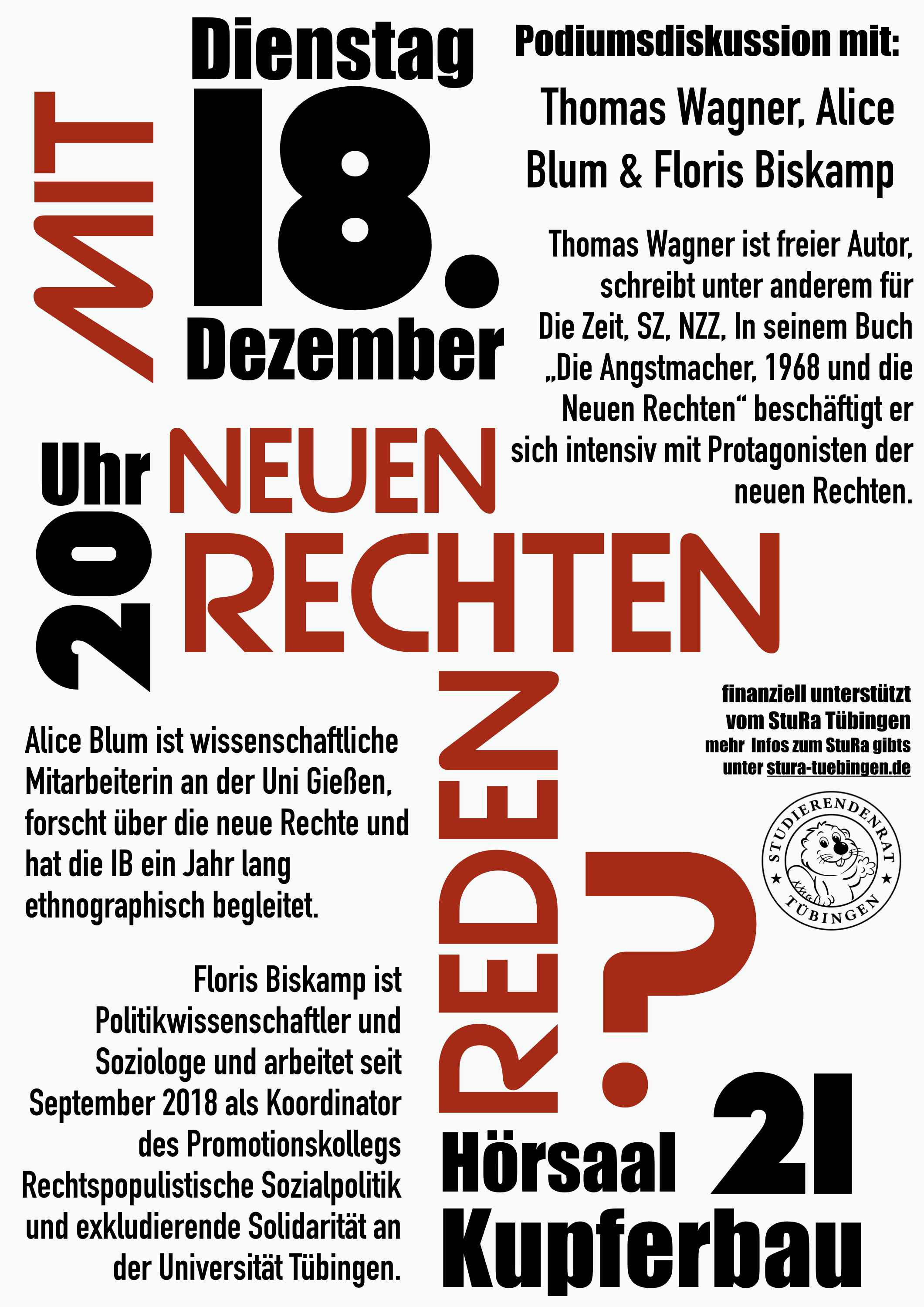 Im Sommersemester ’19 wird es eine von Fachschaften organisierte Vortragsreihe über das CyberValley geben. Jeden Dienstag um 20 Uhr im Kupferbau HS21 sind Vorträge über Maschinelles Lernen, Amazon und die Demokratisierung der Uni geplant. Darüber hinaus gibt es einige zusätzliche Weiterlesen…